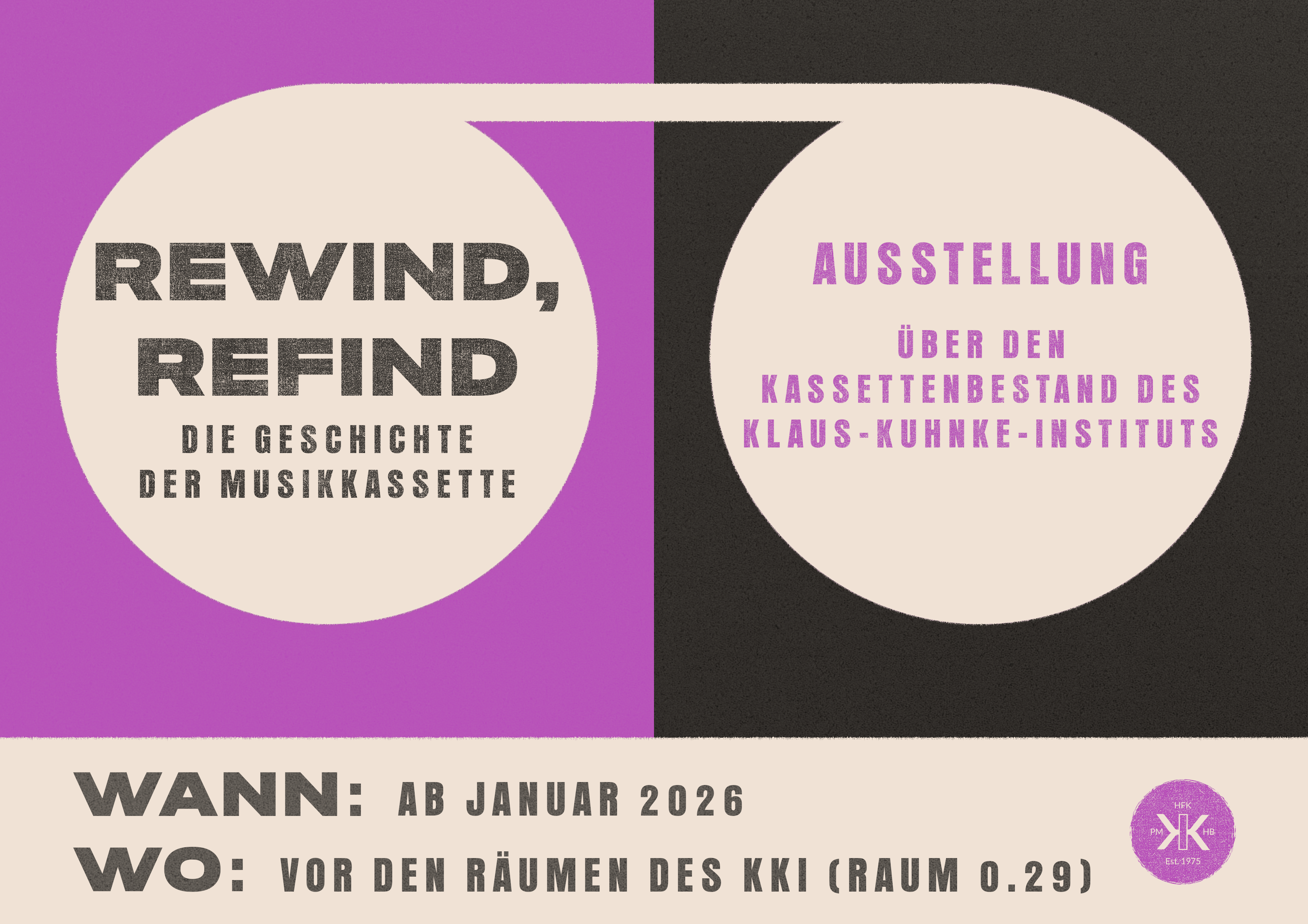 Marcus Bühler hat gerade sein Langzeit-Praktikum bei uns abgeschlossen. Von Oktober 2025 bis einschließlich Januar 2026 hat er uns tatkräftig unterstützt und sich insbesondere unserem Musikkassetten-Bestand gewidmet. Am Ende seines Praktikums hat er eine kleine Vitrinen-Schau erstellt unter dem Titel "Rewind, Refind. Die Geschichte der Musikkassette. Eine Ausstellung über den Kassettenbestand des Klaus-Kuhnke-Instituts". Die digitale Version der Ausstellung ist in unserem Onlinemagazin "S[æ]itenanschläge" einzusehen und nachzulesen.