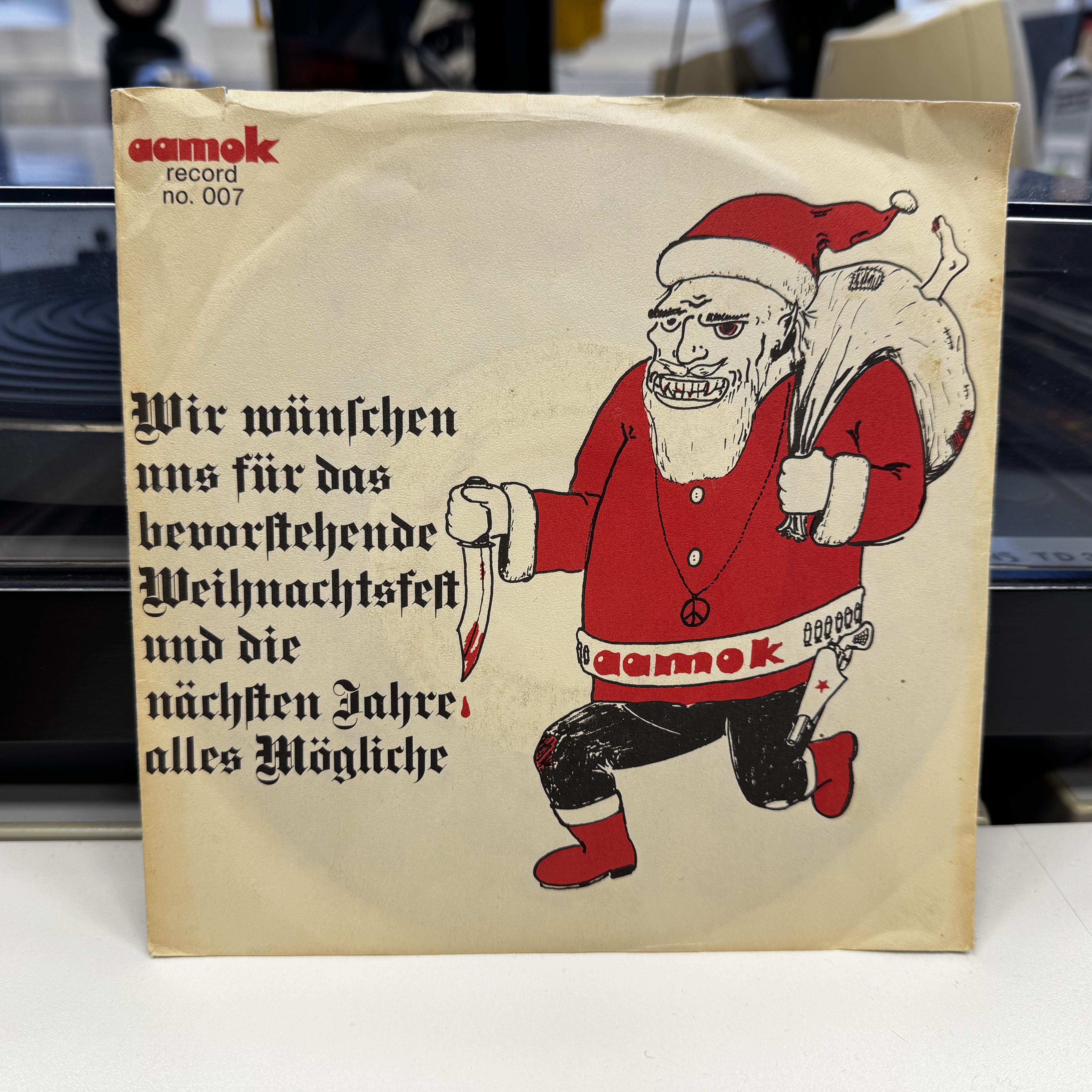 This split vinyl single presents the prolific music producer as a solo artist. The original recording was released in the same year (1973) on the Linda label as "Deutsches Weihnachts-Potpourri" (German Christmas Potpourri). In this edition, the recording was re-released as a promotional single to advertise his own Aamok music production company. The nihilistic slogan on the cover gives an idea of the musical direction, which could be described as pre-punk.