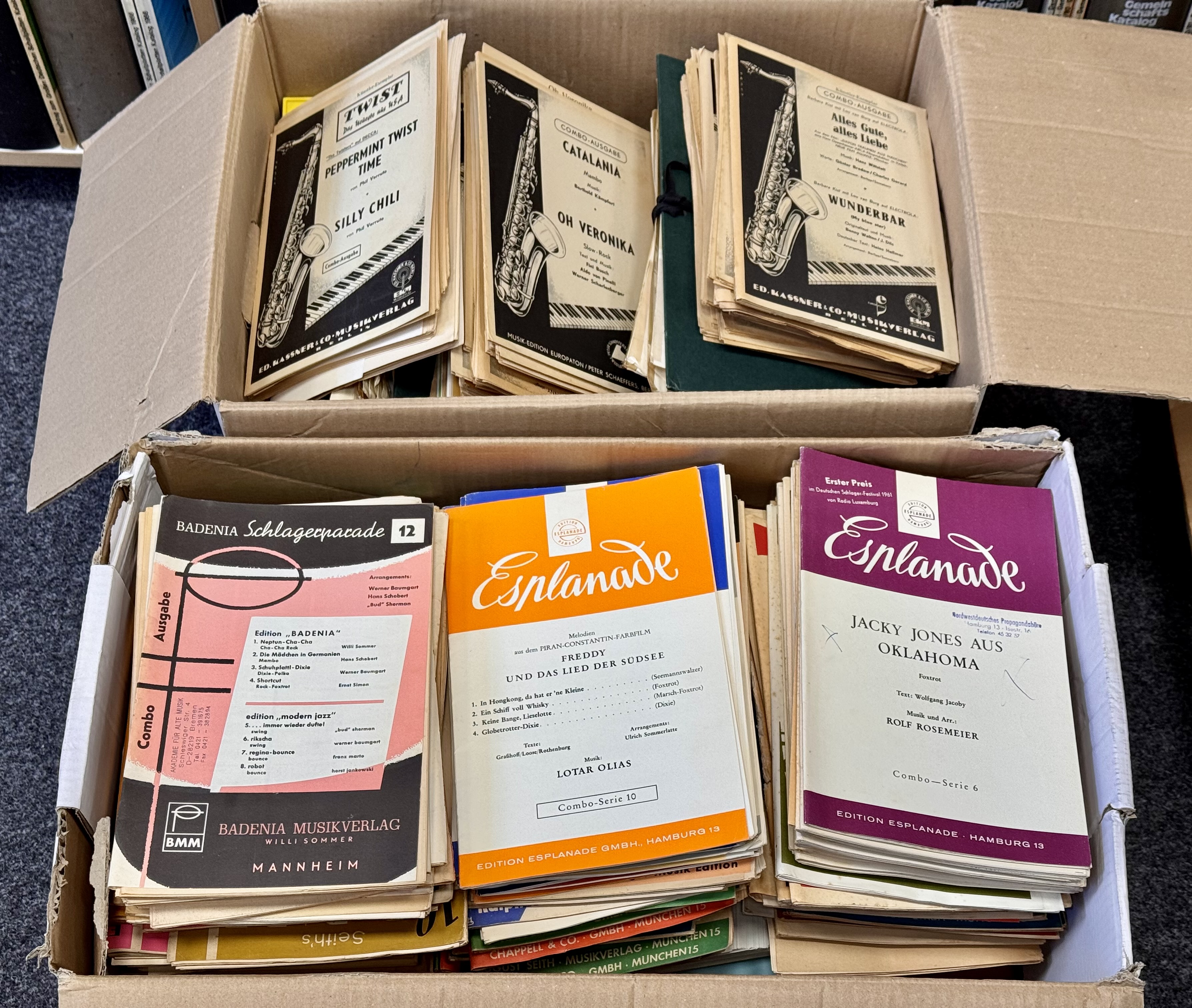Auf dem Dachboden unserer Hochschule für Künste lagerten - in Kisten verpackt - viele Noten, zum Teil seit Jahrzehnten. Nun wurden diese Kisten bei einer großen Umräumaktion entstaubt und geöffnet. Es fand sich dort auch eine beachtliche Anzahl von Rock-, Schlager-, Tango-, Pop- und Jazz-Arrangements für diverse Combo-Besetzungen. Diese haben wir uns selbstverständlich gleich "unter den Nagel gerissen" und in unseren stetig wachsenden Notenbestand aufgenommen.