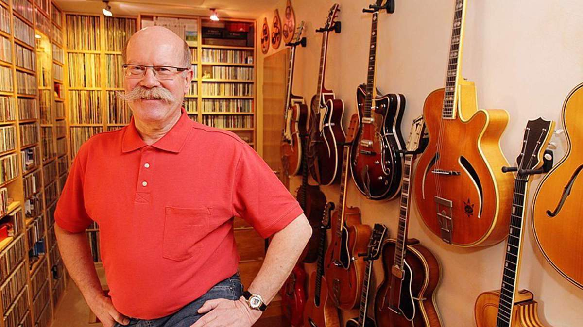 Vinylplatten, CDs, DVDs und Bücher; Schwerpunkt: die E-Gitarre im Jazz (aber auch im Blues und Rock)